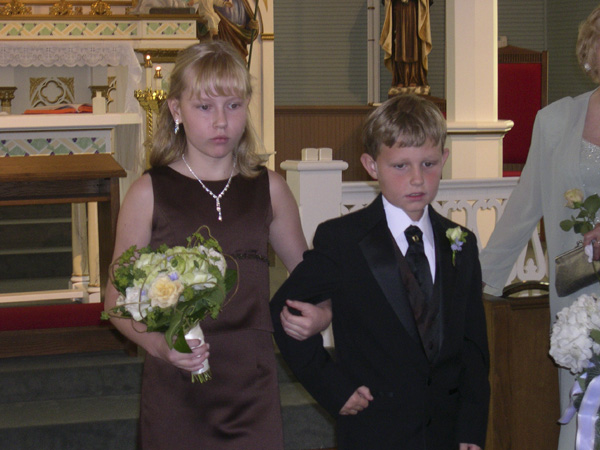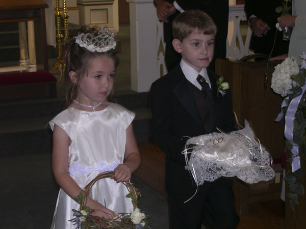 | Presentation of the new couple | Alex Brokmeyer, goddaughter of bride and junior bridesmaid, and Kyle Zappi, godson of groom and junior groomsman |
