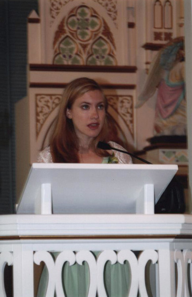 | Mother of the groom, Doris Zappi, escorted by grandsons Matthew Fox and Jamie Fox | Llewyn Paine, lector and niece of groom, escorted by Matthew Fox |