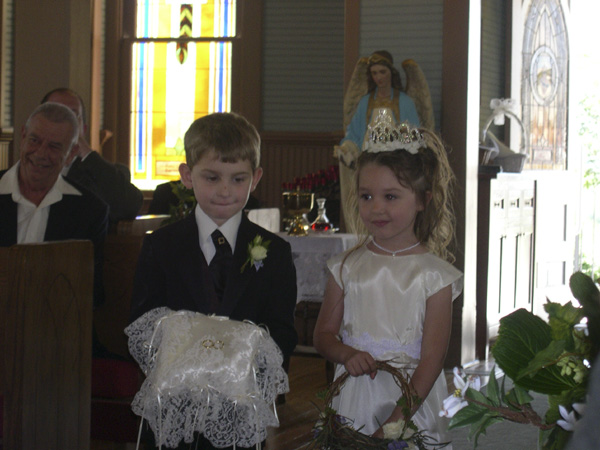 | Presentation of the new couple | Alex Brokmeyer, goddaughter of bride and junior bridesmaid, and Kyle Zappi, godson of groom and junior groomsman |